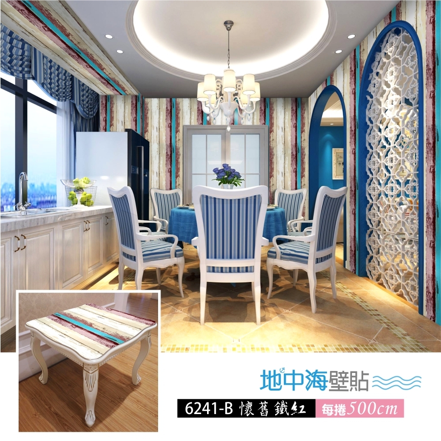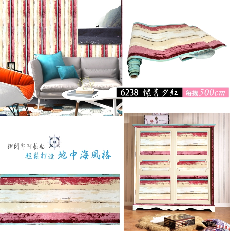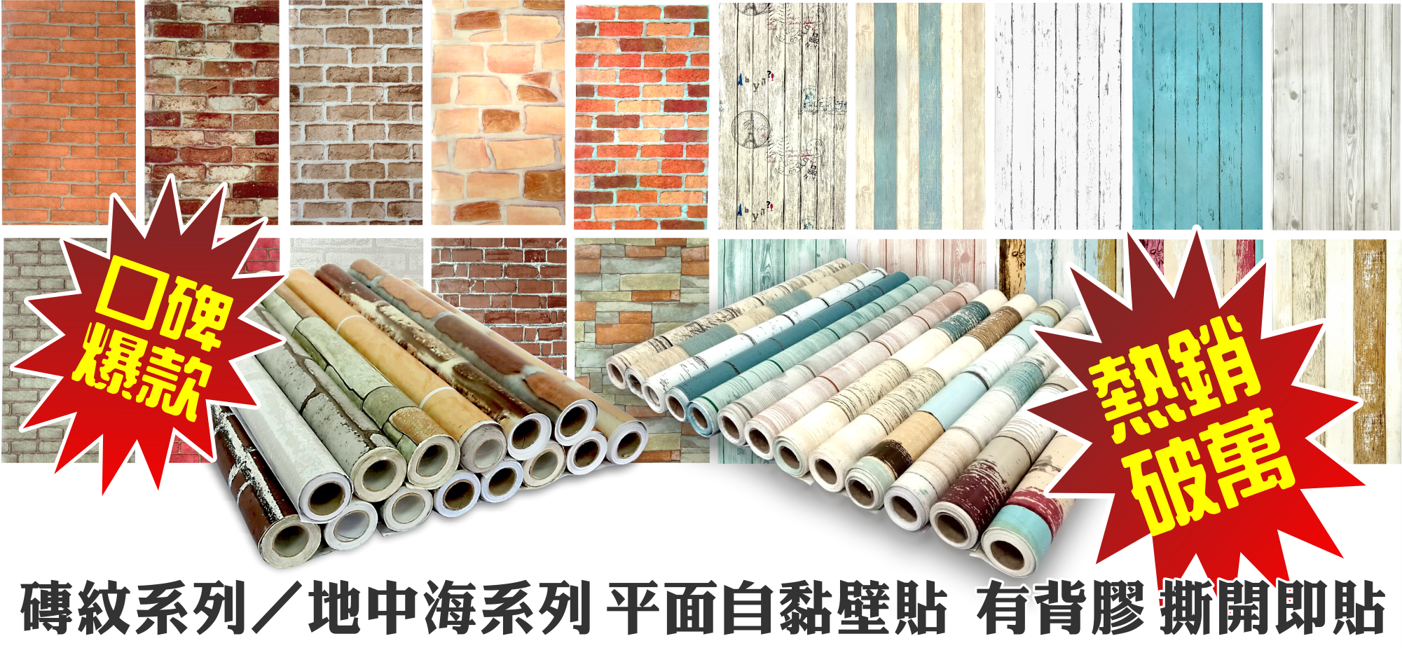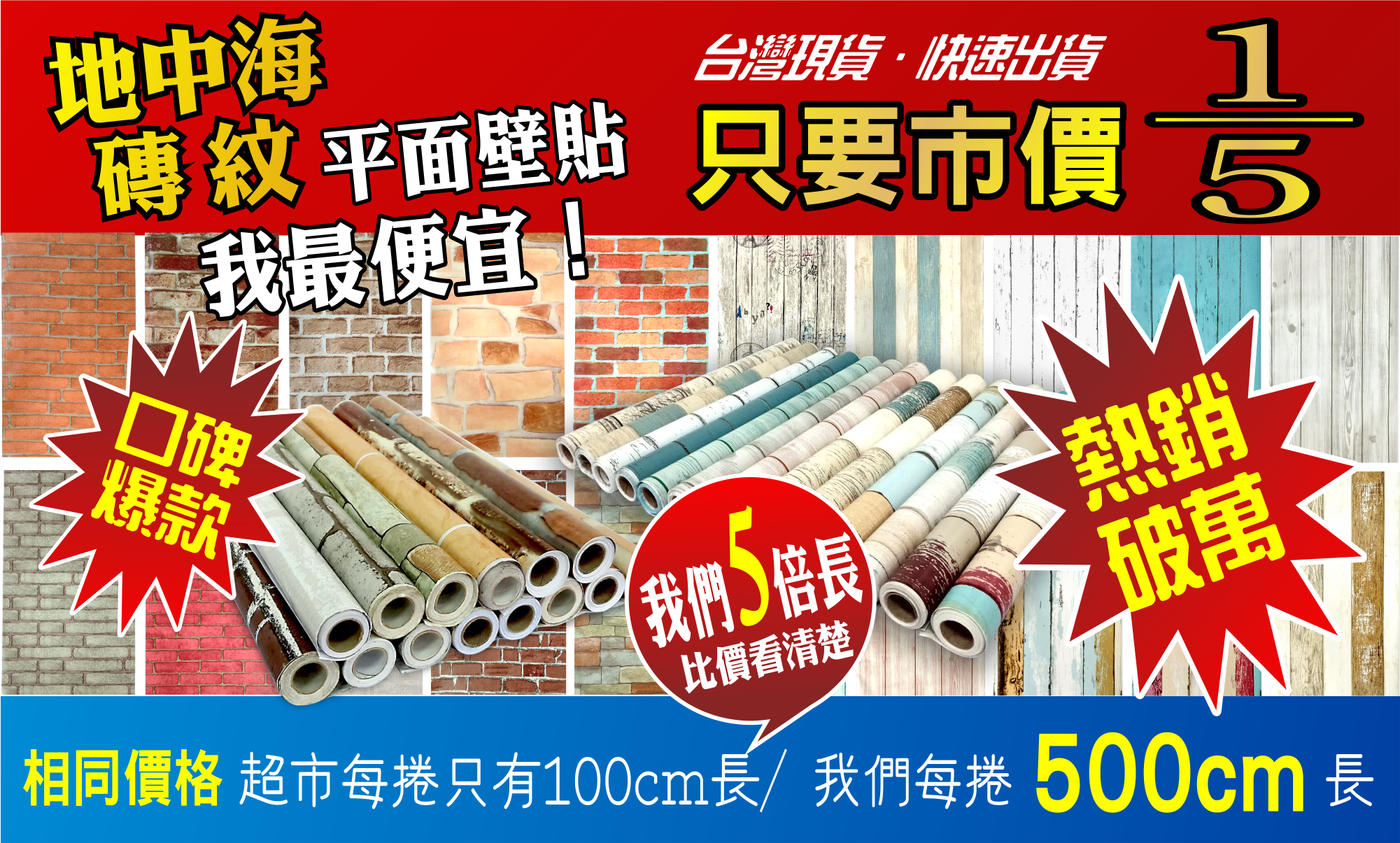 《i58》平面壁貼 磚紋 地中海 防水壁紙 每捲 45x500cm 有背膠 (超市賣場5倍長)