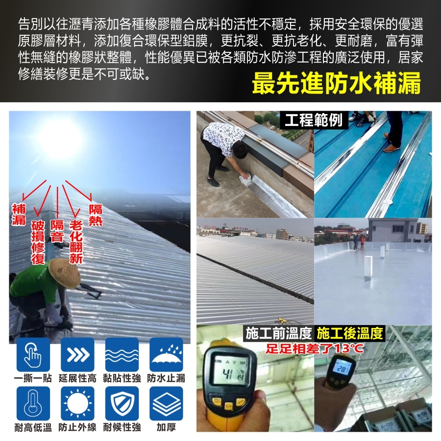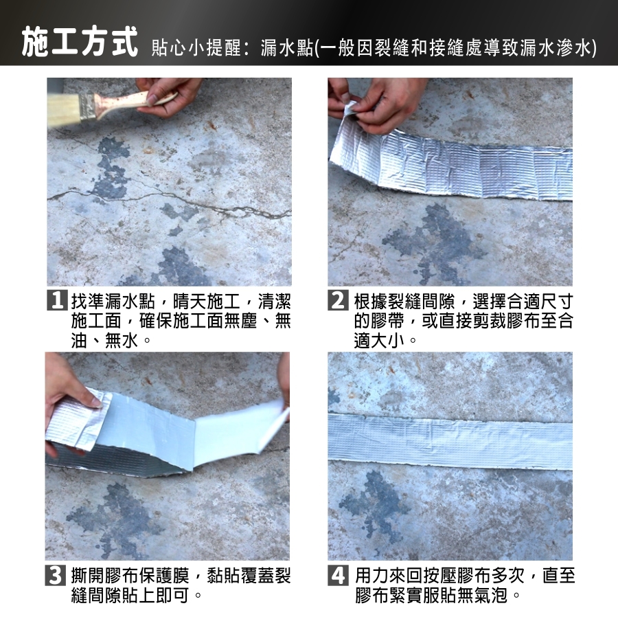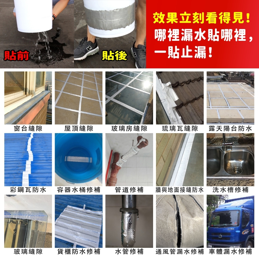 適用   密封堵漏 ∕ 水泥屋頂裂縫 ∕ 鐵皮鏽蝕 ∕ 牆面漏水 ∕ 貨櫃 ∕ 水管 ∕ 玻璃採光罩 ∕ 門窗 ∕ 鋼板屋頂 ∕ 水池 ∕ 車體隔音